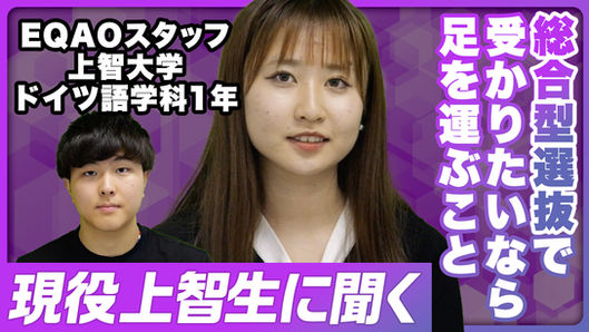 結果から言うと、EQAOに入塾して本当によかったです!第一志望の上智大学に公募推薦で合格できました。公募推薦が専門の塾を探していてこちらに出会い、5ヶ月お世話になりました。最初はオンライン授業がある点に惹かれていたのですが、校舎にも通うことになり、後から思えばそれがとてもよかったです。